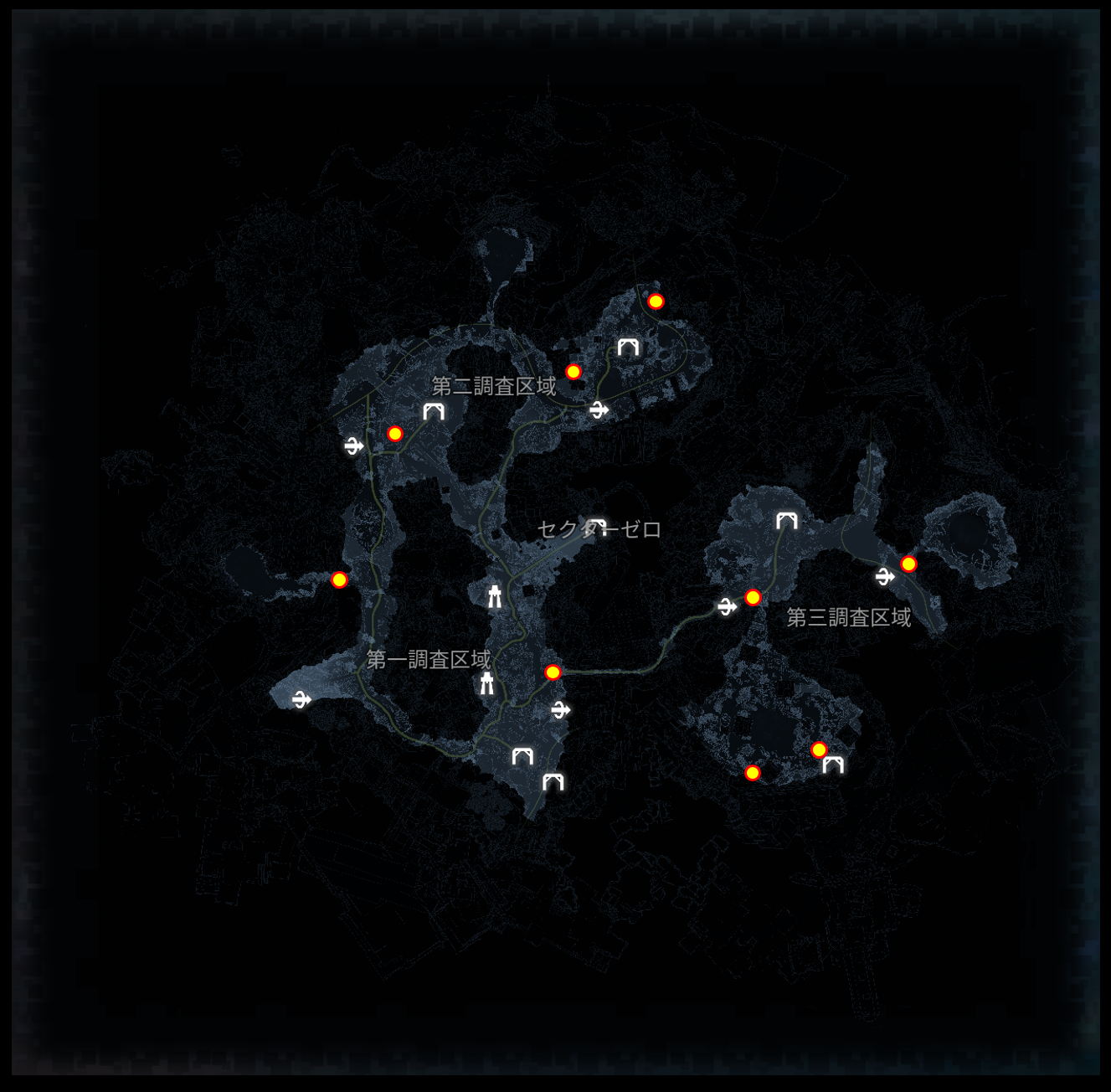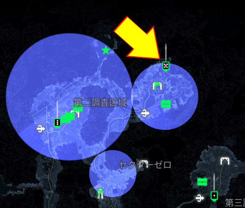 場所は↓の第二調査区域のセクションのところに書いておきますが、たぶんマップ上の配置をミスってるのか、