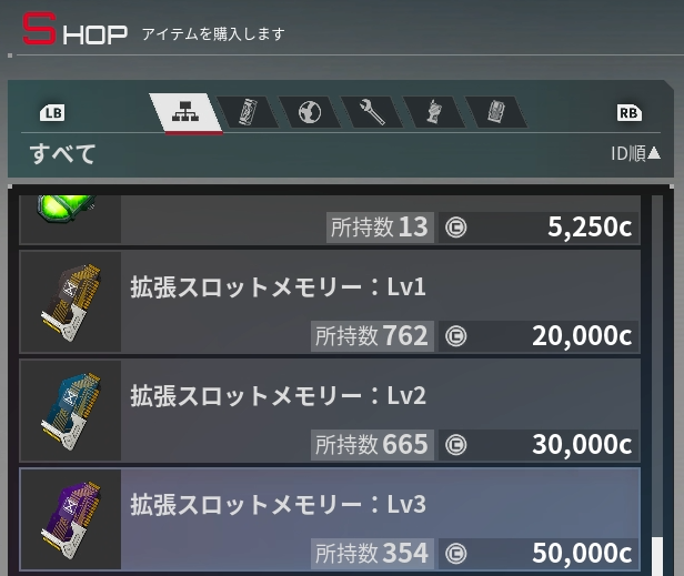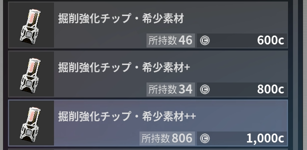 店売り拡張スロットメモリー & 掘削強化チップ・希少素材